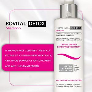 Shampoo rovital detox is designed to boost volume, texture and protecting against further thinning while also cleansing deeply the scalp.